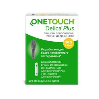 Ланцеты одноразовые УанТач Делика Плюс (OneTouch® Delica® Plus) позволяют безопасно и просто получить каплю капиллярной крови из кончика пальца. Предназначено для использования с ручками для прокалывания УанТач Делика Плюс (OneTouch® Delica® Plus) и ВанТач Делика (OneTouch® Delica®). Ланцеты одноразовые OneTouch® Delica® Plus показаны для прокола кожи для получения небольшого количества крови. Ланцет стерилен, поэтому используйте его немедленно, как только защитная крышка ланцета будет снята. Диаметр иглы: 0,32 мм (30G); Длина иглы: 3,5 мм +/- 0,25 мм;