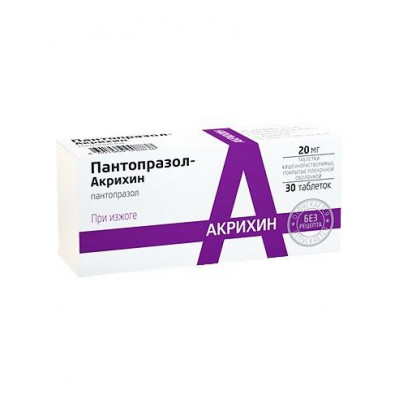 ПАНТОПРАЗОЛ-АКРИХИН 20МГ. №30 ТАБ.КШ/РАСТВ. П/П/О