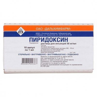 ПИРИДОКСИНА Г/Х 50МГ/МЛ. 1МЛ. №10 Р-Р Д/ИН. АМП. (ВИТАМИН В6) /ДАЛЬХИМФАРМ/
