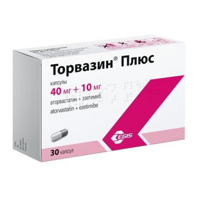 Препарат приводит к снижению содержания холестерина в крови, действуя в двух направлениях, уменьшая всасывание холестерина в пищеварительном тракте и снижая образование холестерина в организме. У большинства людей высокий уровень холестерина не влияет на самочувствие и не вызывает никаких симптомов. Но если не лечить пациентов с повышенным содержанием холестерина, происходит отложение жиров в стенках кровеносных сосудов, что приводит к сужению сосудов. Иногда может происходить закупорка таких суженных кровеносных сосудов, и кровь перестает поступать к участку сердца или головного мозга, что приводит к инфаркту или к инсульту. Снижение уровня холестерина может уменьшить риск инфаркта, инсульта и подобных заболеваний. Препарат Торвазин® Плюс применяют у пациентов, у которых содержание холестерина не удается снизить только с помощью диеты. Во время приема данного препарата следует продолжать соблюдение диеты, снижающей содержание холестерина. Ваш лечащий врач может назначить препарат Торвазин® Плюс, если Вы уже принимаете аторвастатин и эзетимиб в тех же дозах. Препарат Торвазин® Плюс не помогает снизить вес. Если улучшение не наступило, или Вы чувствуете ухудшение, необходимо обратиться к врачу.