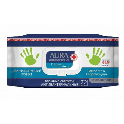 АУРА ДЕРМО ПРОТЕКТ САЛФЕТКИ ВЛАЖН. А/БАКТ. РОМАШКА №72 БИГ-ПАК КРЫШКА [AURA]
