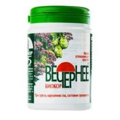 Благодаря природному комплексу веществ валерианы, хмеля и мяты «Вечернее Биокор» обладает седативным, успокаивающим, регулирующим сердечную деятельность свойствами, является мягким спазмолитическим средством.